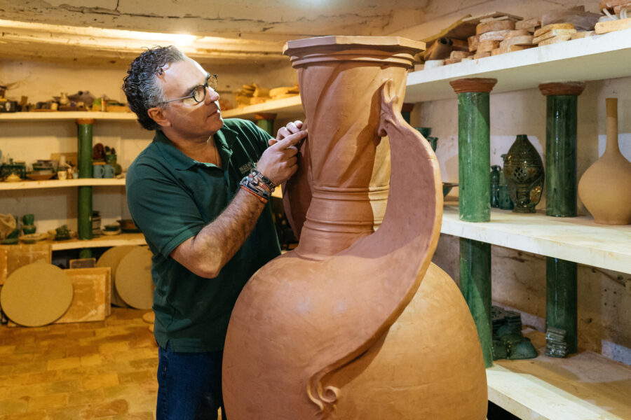 Su proyecto profesional se articula en torno a un espacio único que integra producción artesanal, conservación patrimonial y difusión cultural. El alfar conserva y mantiene en uso  un horno hispano-árabe, uno de los escasísimos ejemplares que continúan funcionando en la península Ibérica. La cocción, realizada exclusivamente con biomasa —leña de poda de olivo y orujo— durante más de 24 horas, otorga a cada pieza un carácter irrepetible, imposible de replicar mediante procesos industriales.