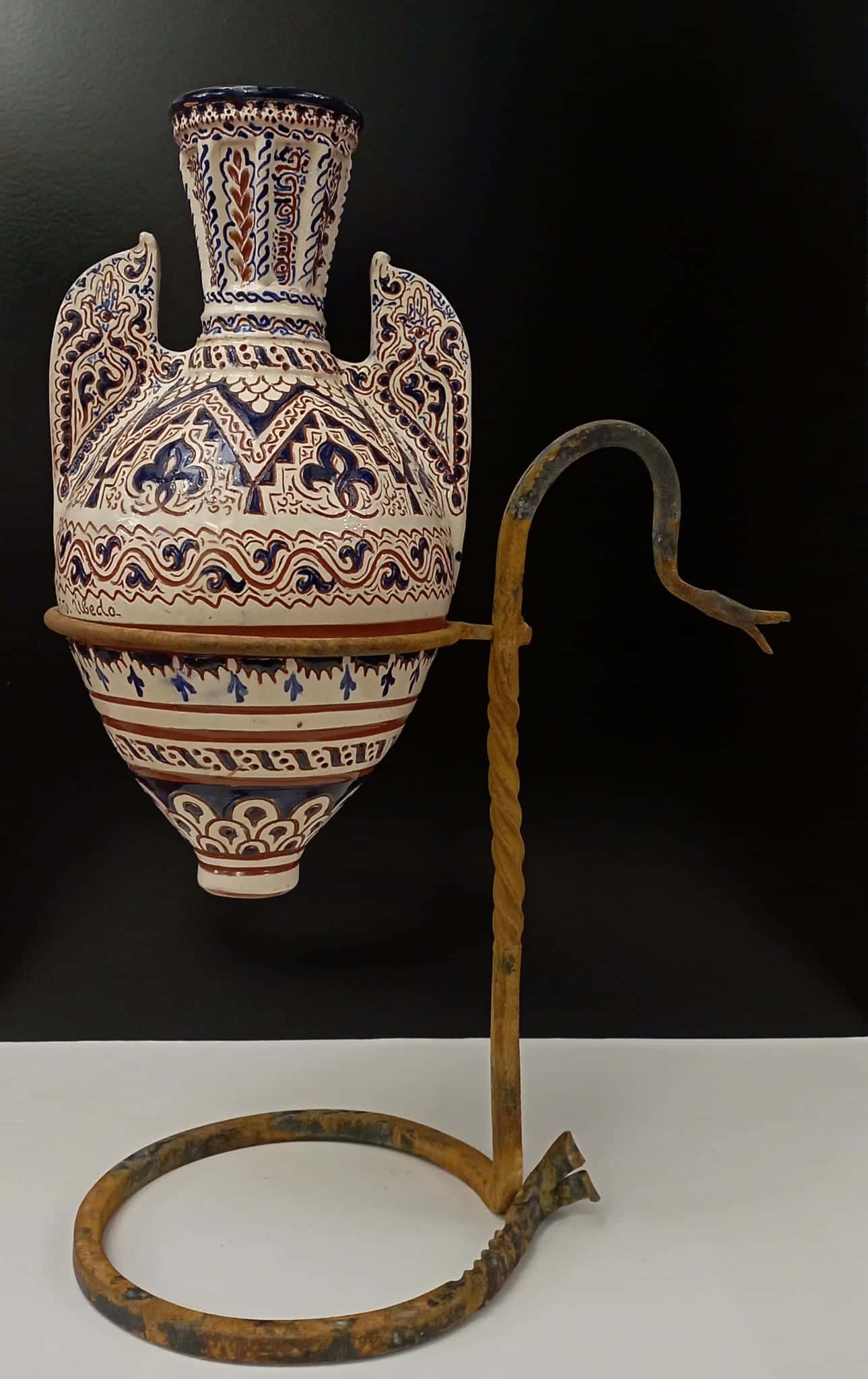 Presenta la base plana muy estrecha, con cuerpo globular muy estilizado. Decorativamente tiene un repertorio completo y variado de motivos: vegetales, epigráficos, geométricos y zoomórficos.  La parte alta del cuello de forma agallonada, presenta franjas verticales con temas de lacería o ataurique.